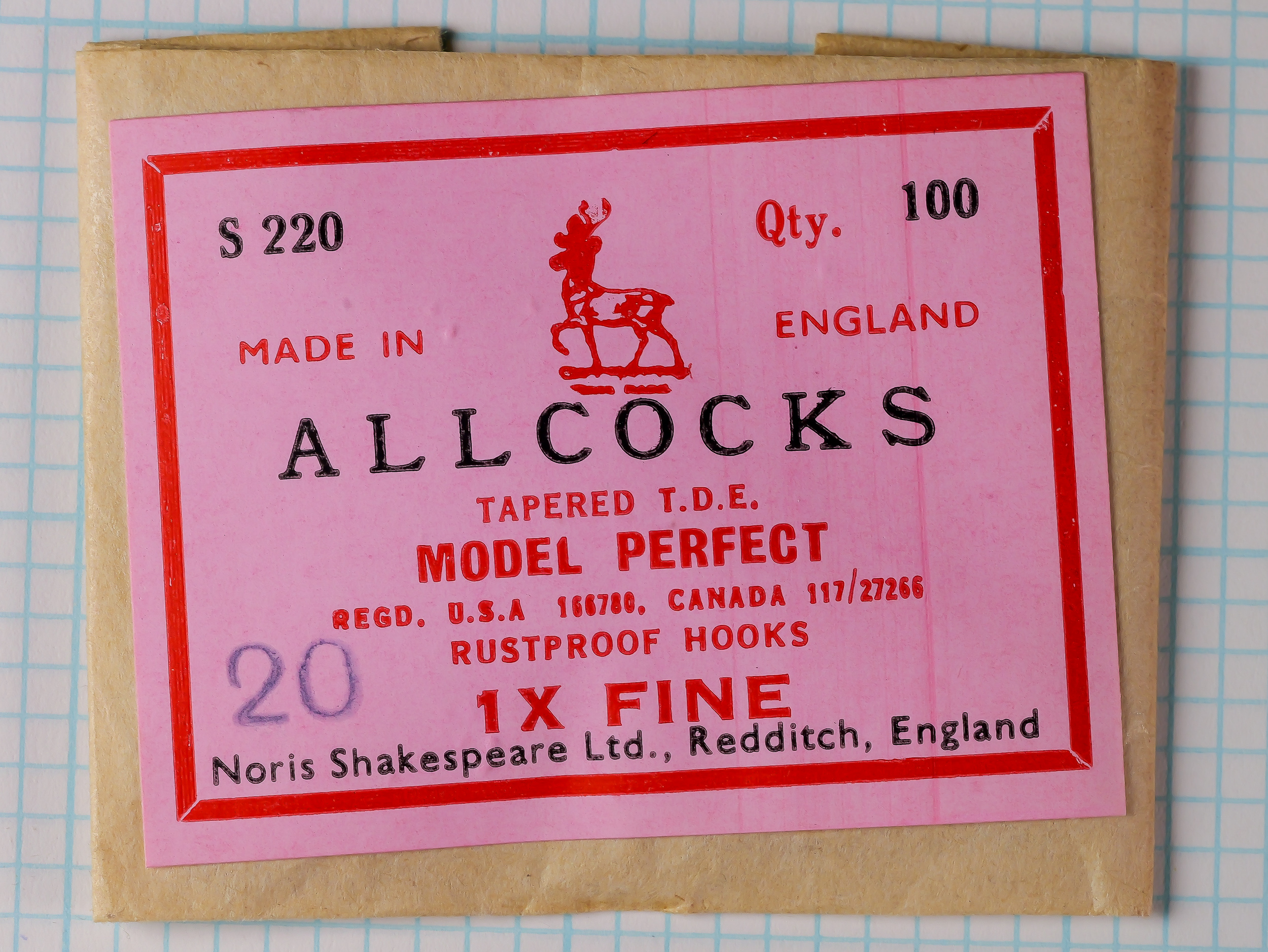 The Allcocks S 220 “Model Perfect” is a classic 1X fine dry fly hook hailing from the historic tackle-manufacturing hub of Redditch, England. Produced during the Noris Shakespeare transition era of the late 1960s, these hooks feature a legendary, perfectly round bend and a tapered down eye that minimizes bulk on delicate midge patterns. Today, they remain highly valued by traditional fly tiers and vintage tackle collectors for their precision craftsmanship and historical significance in dry fly design.